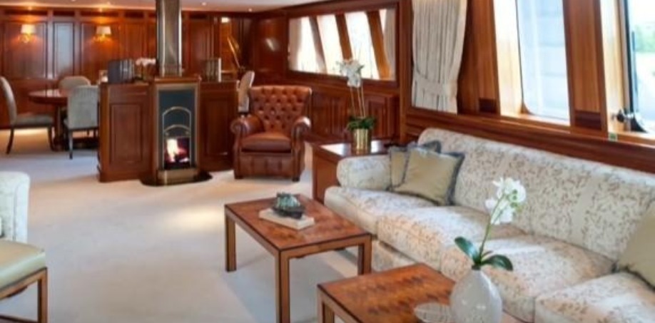 With a gross tonnage of 310, the stunning vessel has a top speed of 14 knots and cruises at 12.5 knots. She carries 2 x 46,000L Caterpillar Inc diesel engines. She is also equipped with a stabilization system that creates a smoother, more enjoyable cruise by reducing roll motion effect.