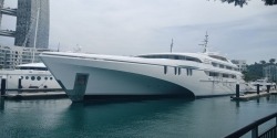 The smaller yacht, White Rabbit E (WRE) is 64m but looks tiny when next to the WRG! Unfortunately, it wasn’t in its berth today but even the neighbouring superyachts were completely over-shadowed by the WRG super structure!