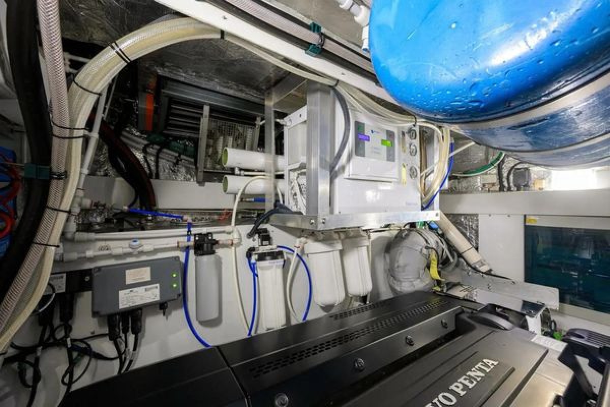 Some notable options and upgrades include: Xenta docking joystick at helm and cockpit with DPS Bow and stern thruster Diesel FuelMag conditioning system Watermaker with purifier SAT TV UHD7 Yacht Controller
